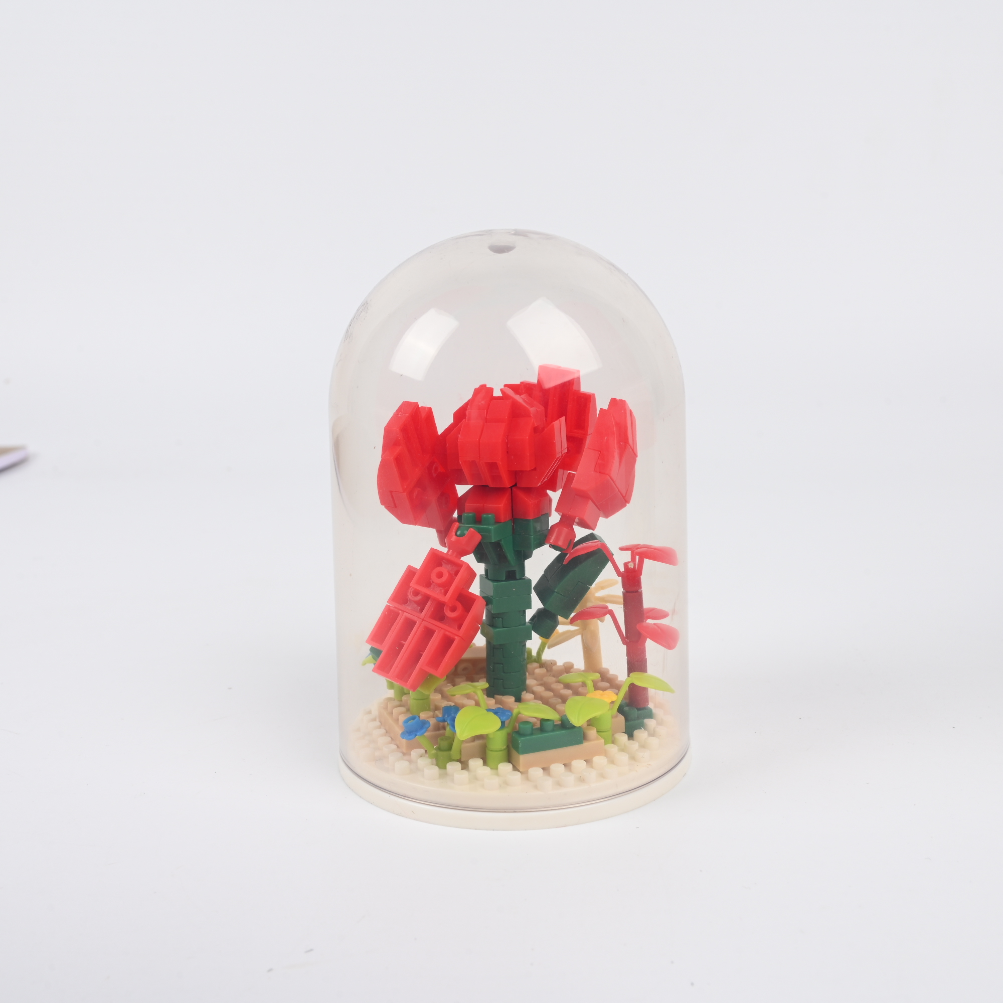 Design: You will receive a rose-shaped Toy Building Blocks ornament, adorned with miniature flowers crafted from building blocks. It features LED lights and a dust cover, making it an ideal decorative piece for your home.